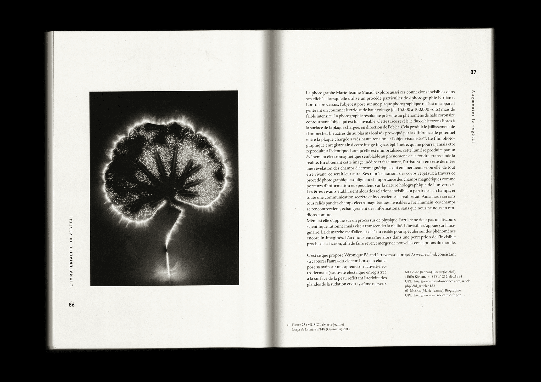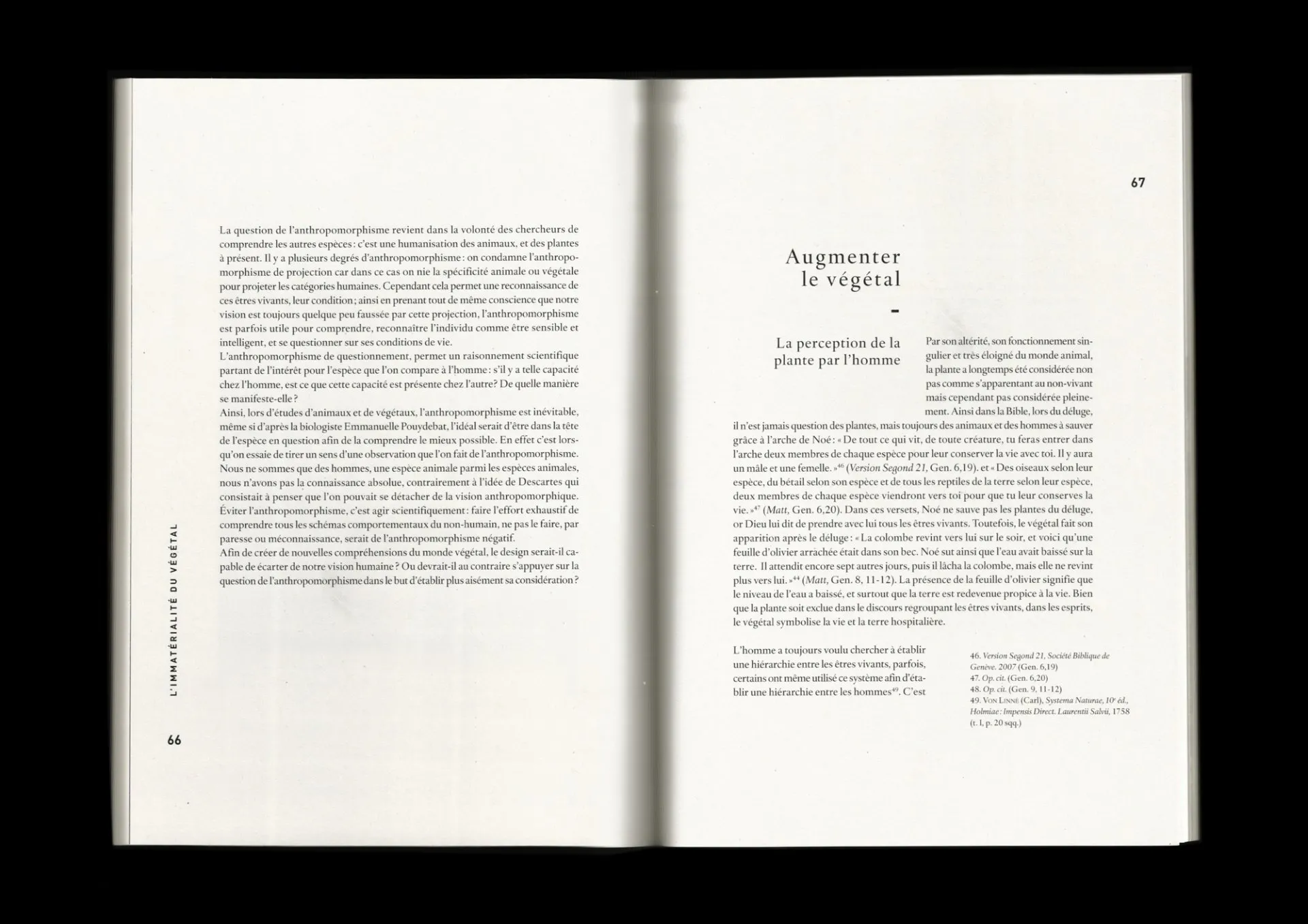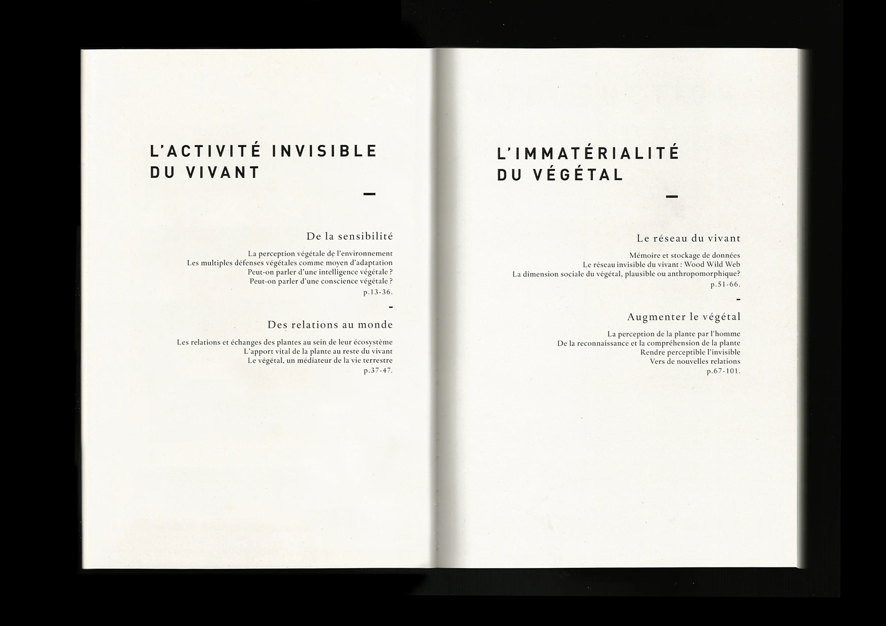 I have tried to reconsider the invisible activity of the living, by exploring the fact that plants are endowed with sensitivity and able to defend themselves which implies a degree of intelligence and consciousness. Then, I have questioned the human-plant relationship, and finally, the role of design in order to establish a new perception of the real and the immaterial, opening to new relation to the world.