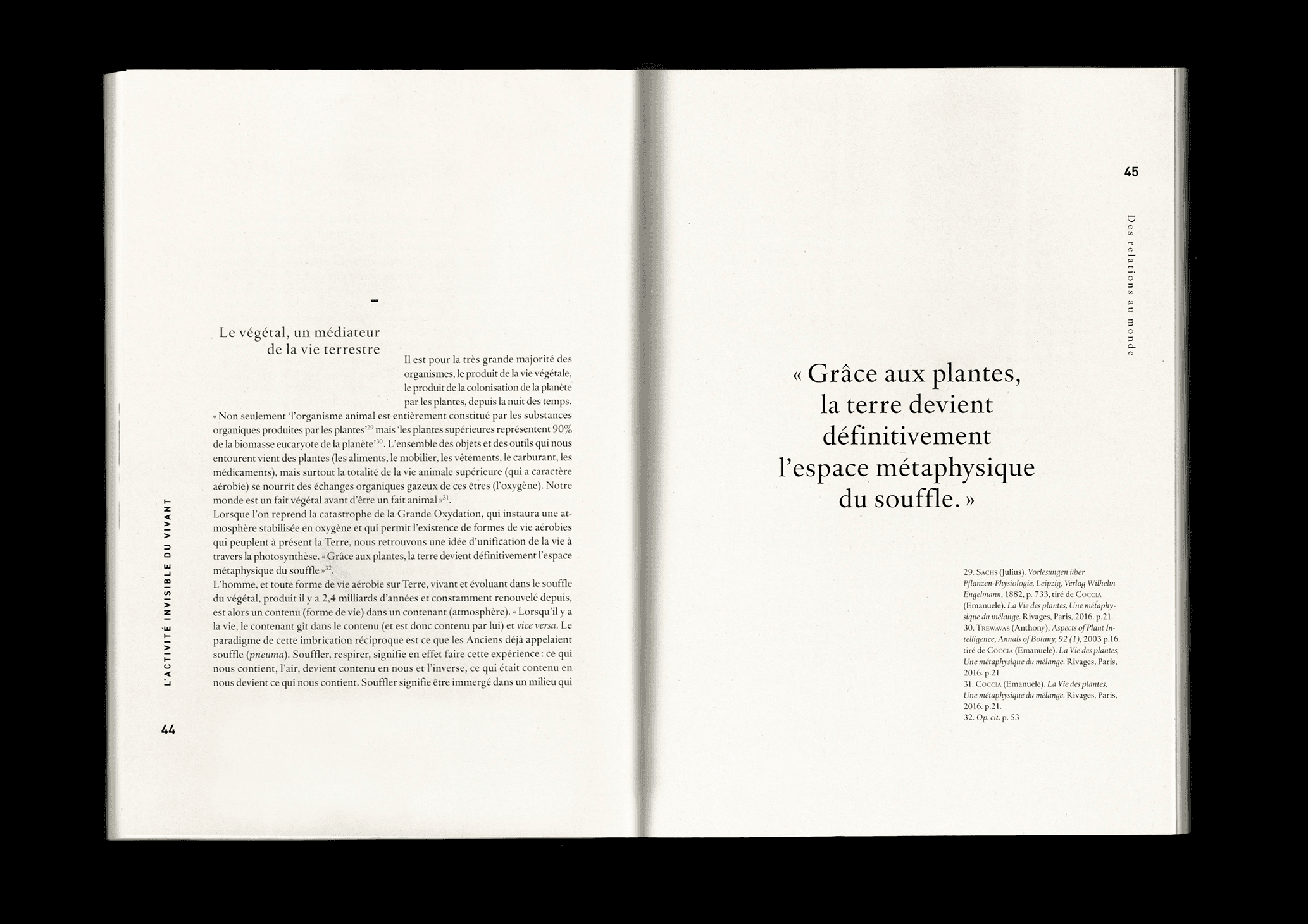 I decided to study the importance of the visibility of the activities and exchanges of the living and I have focused my essay on plants and on the vision humans beings have of them. In this dissertation, I have attempted to question the capacity of design to enable new perceptions of the living and the possibility to "reconnect" with the plant world.